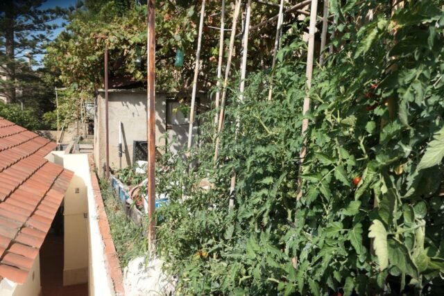Un pequeño espacio también está dedicado a zona de huerto y podemos ver diferentes árboles frutales alrededor de la casa.