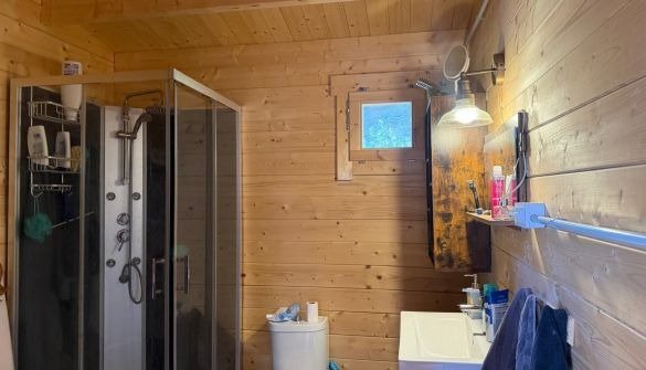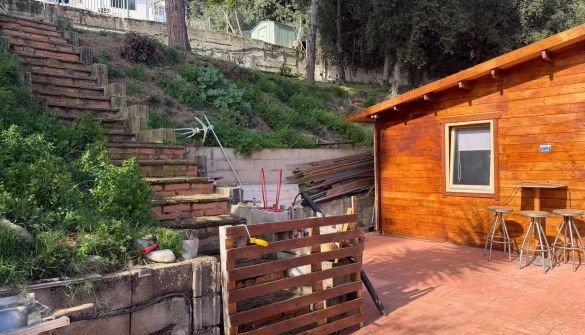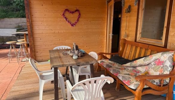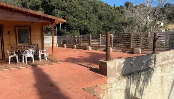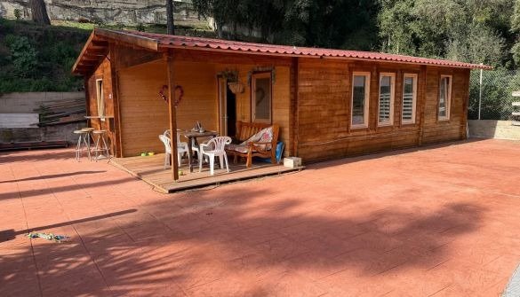 Casita de madera en parcela con vistas al mar