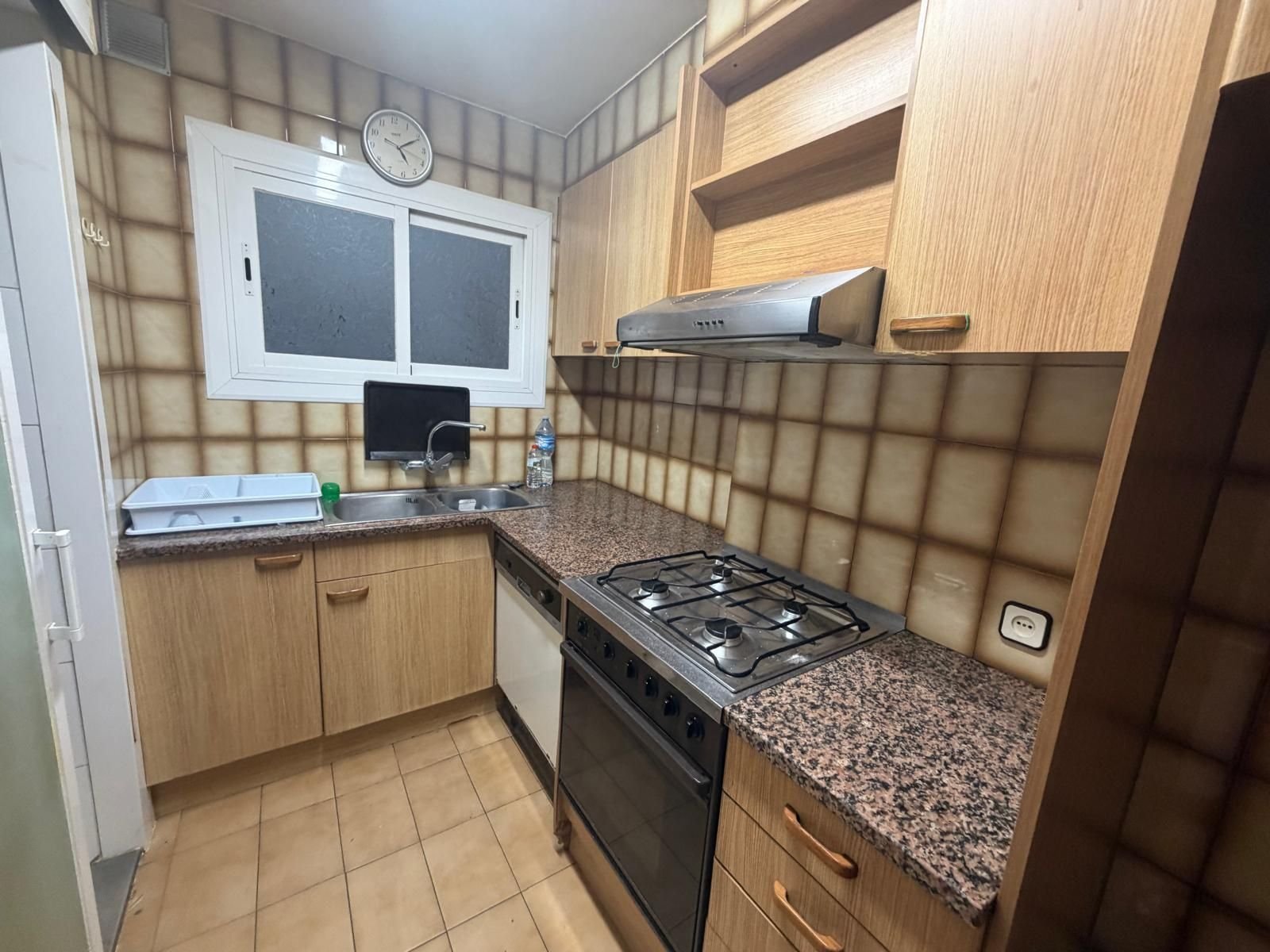 Salón-comedor acogedor, agradable y luminoso con salida a grandes ventanales con vistas despejadas. Desde el salón también comunica con la cocina con lavadero, muy práctica y funcional y en buen estado.